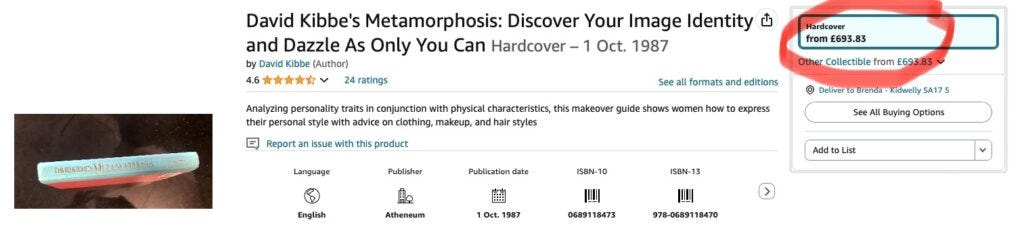 David Kibbe's Metamorphosis: discover your image identity and dazzle as only you can is one of the worst titles ever and, yes, the price of this book is insane. fortunately, there's not long to wait until his book comes out. 7 January 2025 is the publication date.