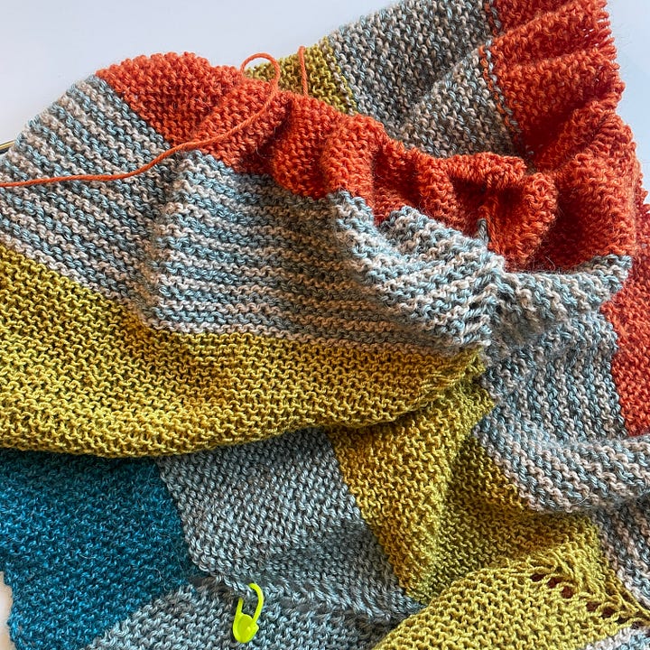 The Bradford Road wrap progresses through garter rectangles. Big Love Cardigan waits for cooler weather. But sewing succeeded where knitting failed—the Peppermint Pocket Skirt (free collaboration between Peppermint Magazine and Paper Theory) paired beautifully with the Block Tee, with right angle sewing tutorial making construction straightforward.