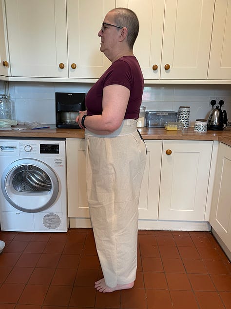 The revelation: Ruth Collins’ Top Down Centre Out trouser fitting method. Begin with fitted waistband, construct single-leg toile, achieve proper fit without body-shaming adjustments. Demonstrated through Stacey Taylor’s free YouTube series at The Crooked Hem.
